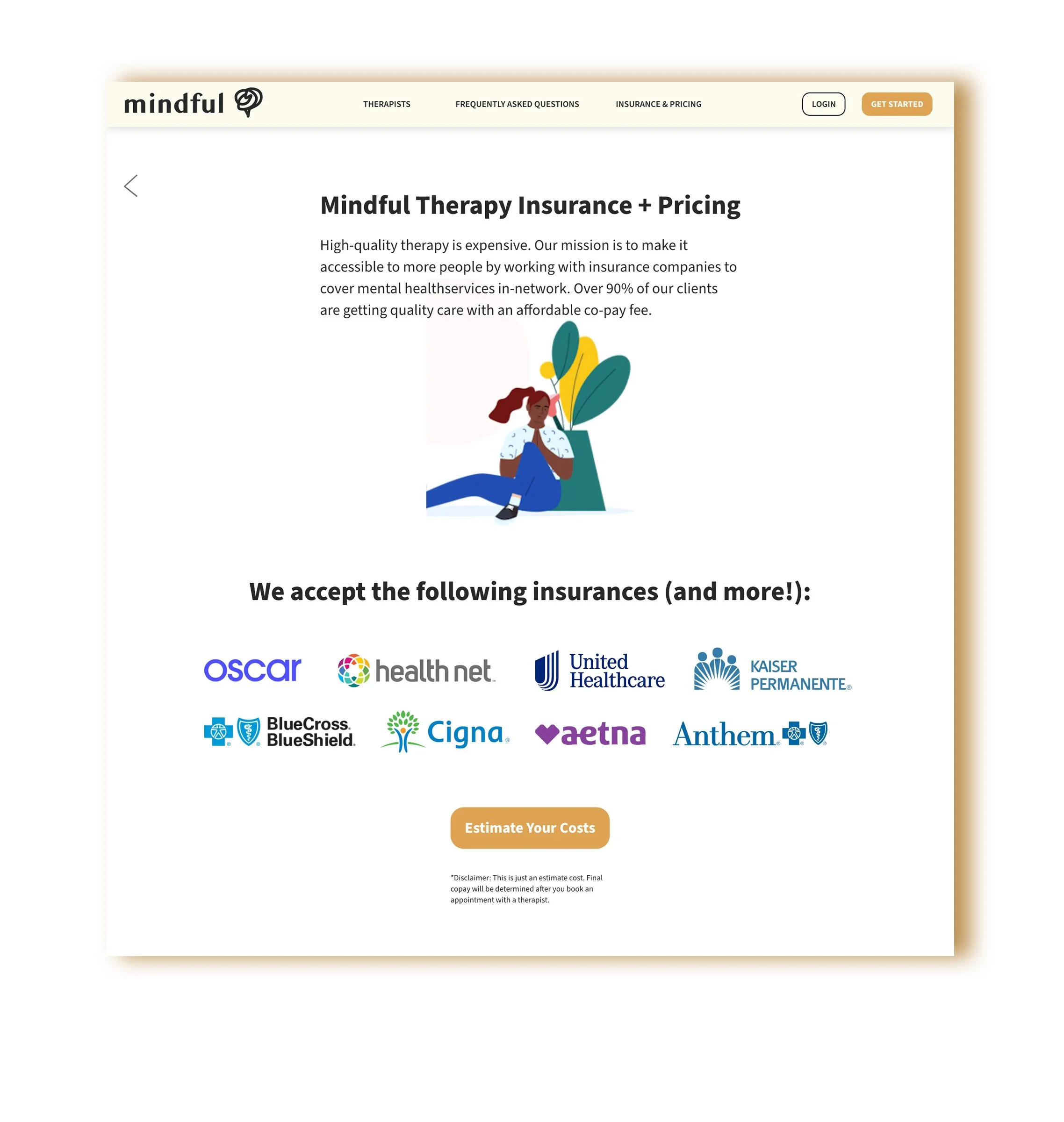 Estimated therapy costs are already provided from the homepage phase, letting user know what to expect before proceeding to onboarding.